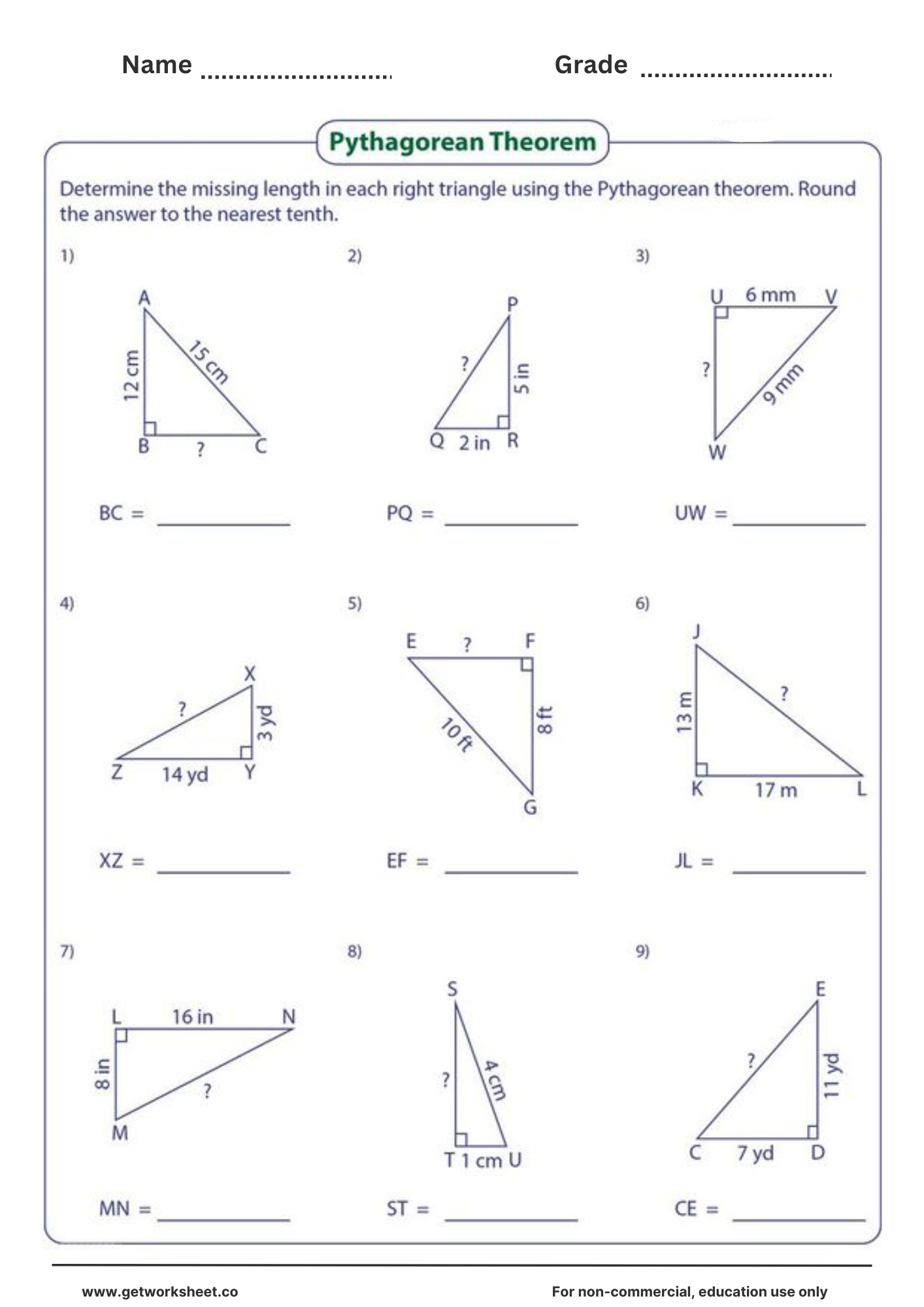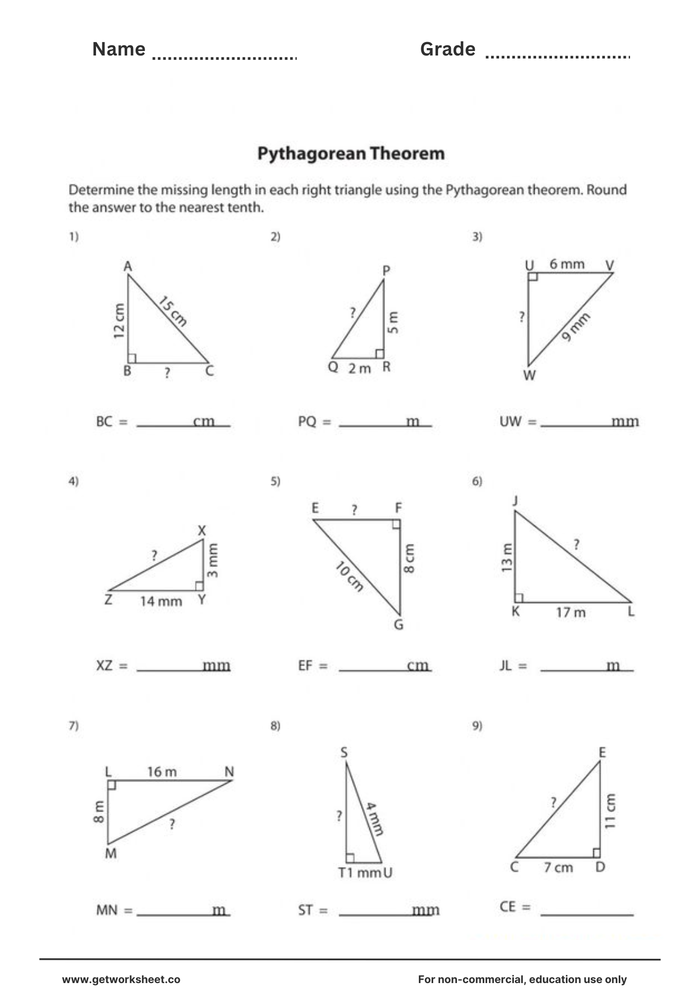 Free pythagorean theorem worksheet worksheet 9
