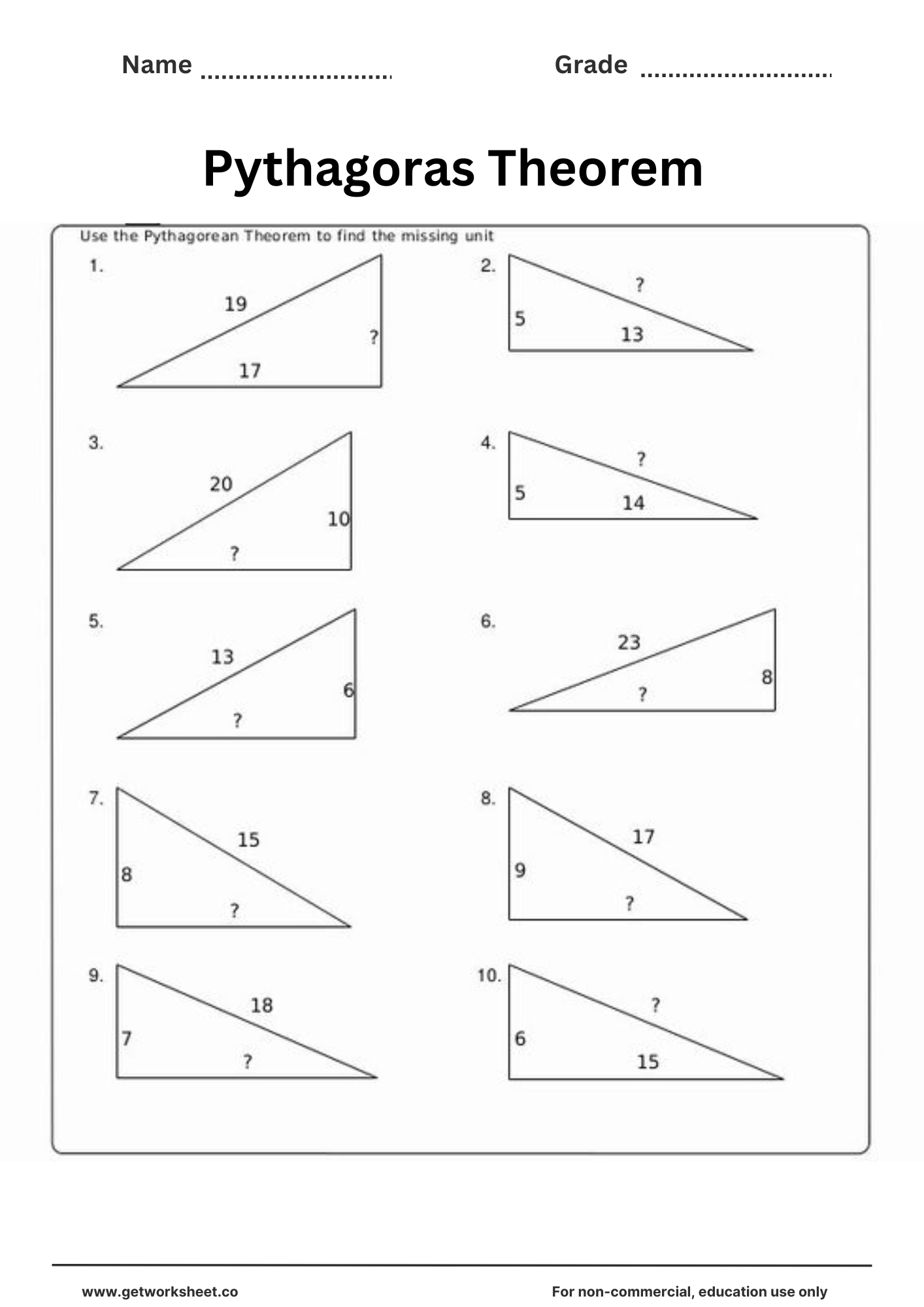 Free pythagorean theorem worksheet worksheet 10